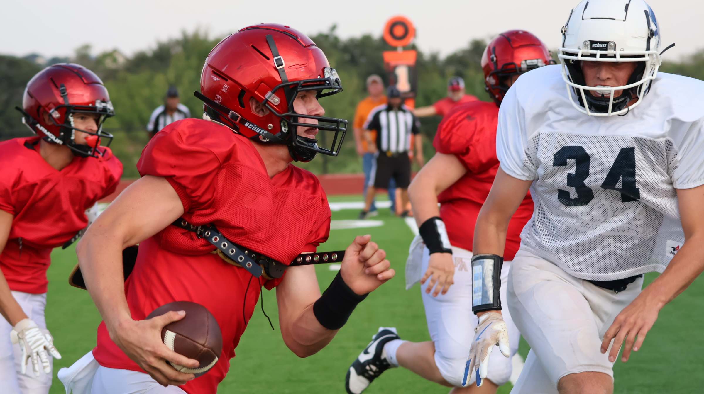 CAPTION: Head coach Jay Silvers guides the Flames to their season opening win for the first time since 2021. Staff photo by Jennifer Fierro The Faith Academy of Marble Falls football team defeated Sugar Land Logos Prep 52-41 Aug. 28 at Bryan Allen Academy. The Flames (1-0) raced to a 24-15 lead in the first quarter thanks to senior Andrew Houy, who had three rushing touchdowns and sophomore kicker Egan Barnes connecting on all 3 two-point kicks. But a fumble and a four-and-out by the Flames allowed the Lions (0-1) “to…