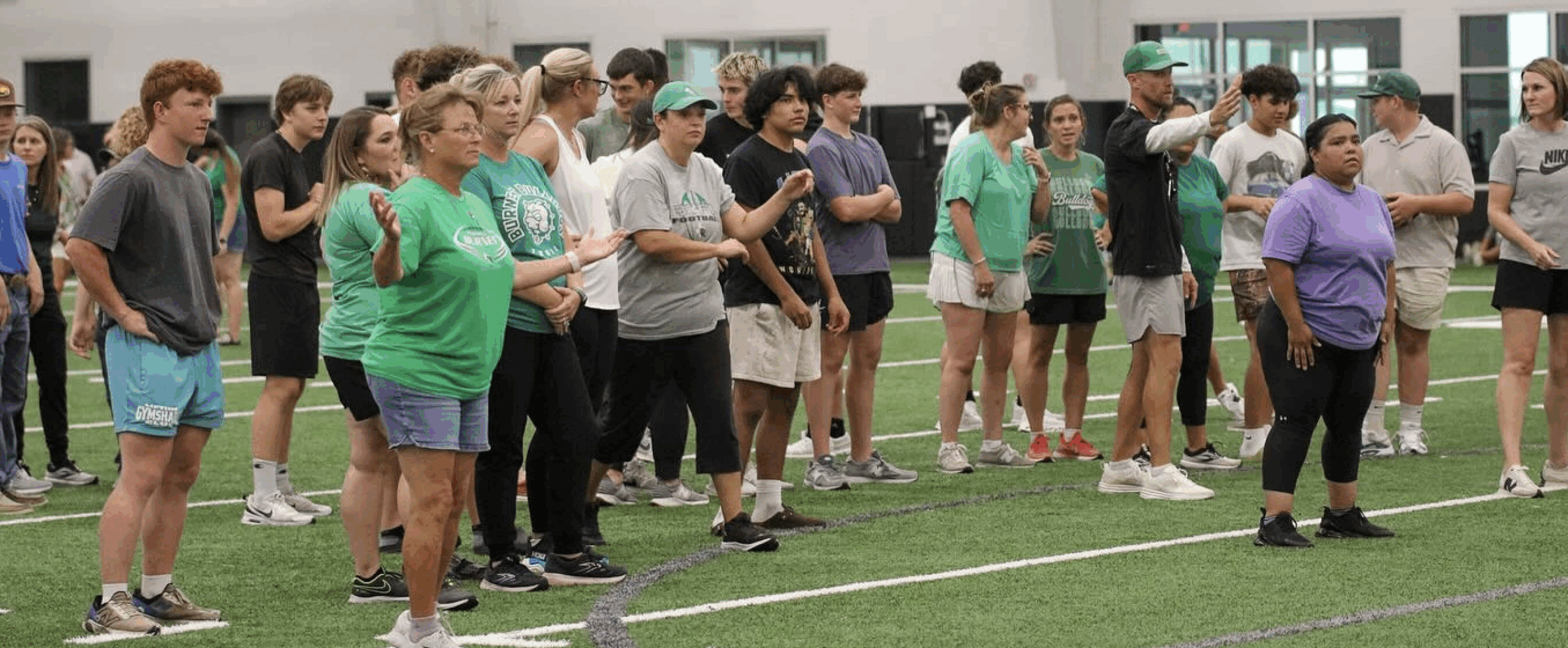 The activities were all apart of Mom’s Night Out, the program’s annual gathering where mothers, grandmothers and any female wanting to know more about Burnet football were invited to participate. Now that the Student Activity Center is open, the drills were conducted indoors Aug. 8.