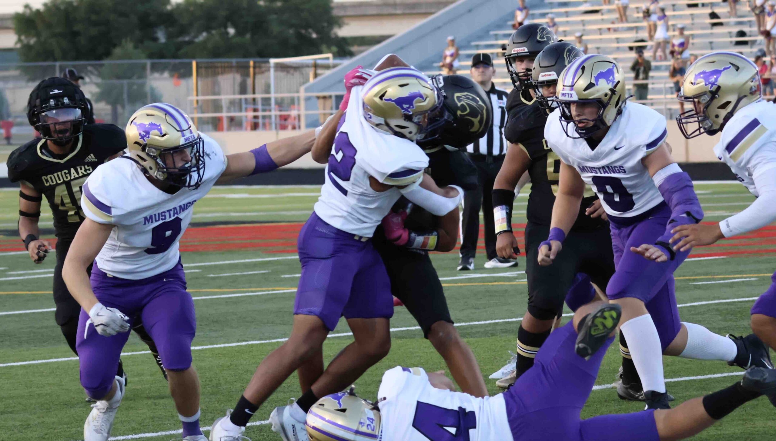 CAPTION: Marble Falls junior linebacker Branson Bunting (9), senior cornerback Quavyon Alexander (12), senior defensive end Kaleb Bielfeldt (0) and junior Jesus Rodriguez have fielded a defense that forces opponents to earn their yards and points. Staff photo by Jennifer Fierro The Marble Falls High School football team took its bye Oct. 24 while the rest of District 4-4A Division I played. Head coach Keri Timmerman said the bye week came at the right time days before the announcements of changes to game schedules in the Highland Lakes. Area teams…