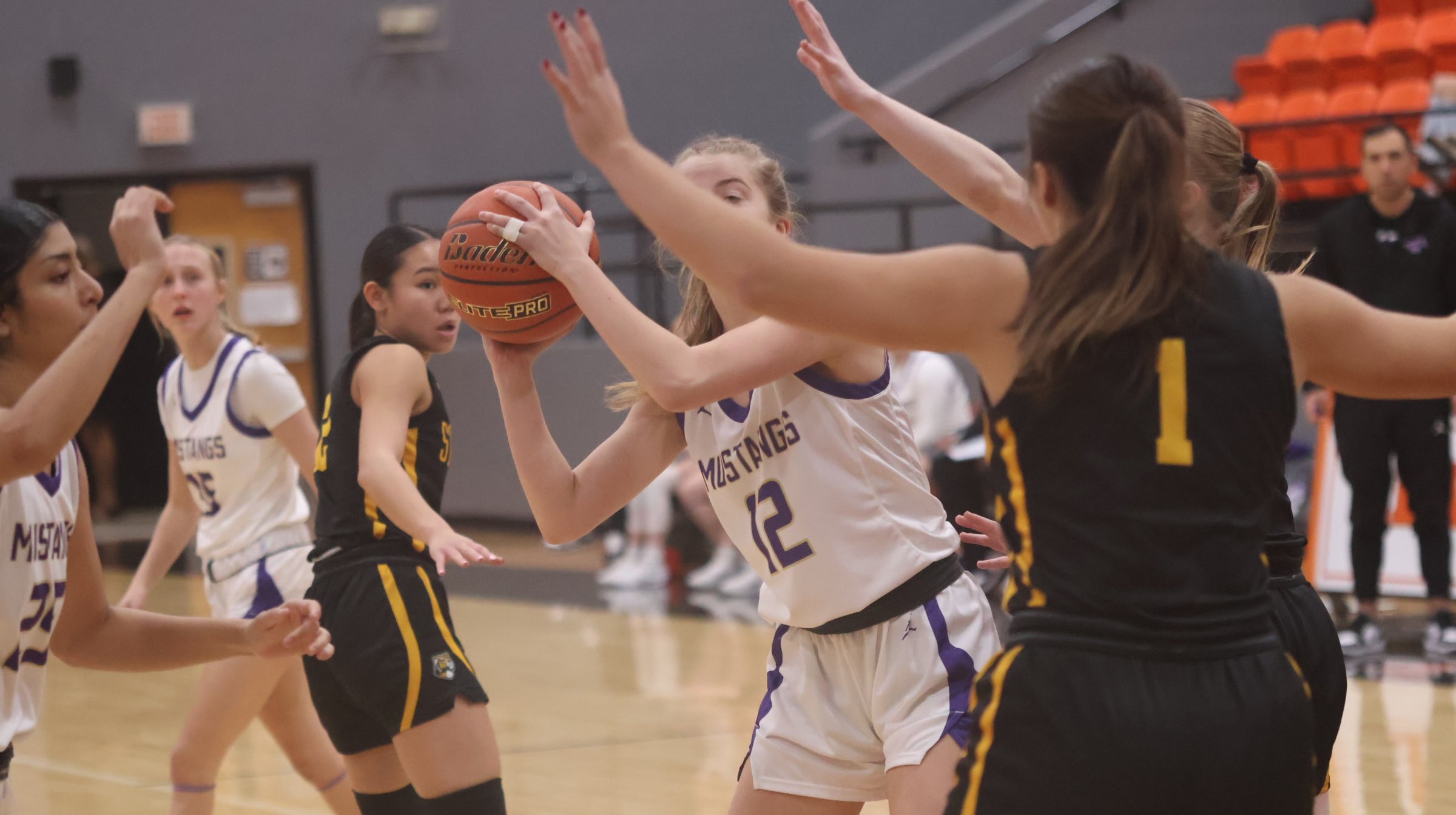 CAPTION: Marble Falls junior forward Marc Barrios came through with the game winner against Greenwood that illustrates the work the Mustang has done in the offseason. Staff photo by Jennifer Fierro The Marble Falls High School boys basketball team defeated Midland Greenwood 38-35 Dec. 4 for its only win in the HTeaO Hoops Classic. The Mustangs (3-6) lost to Georgetown East View 60-35, San Antonio Edison and “We were playing some pretty big, competitive schools,” head coach John Berkman said. “But it was good for us to see that level…