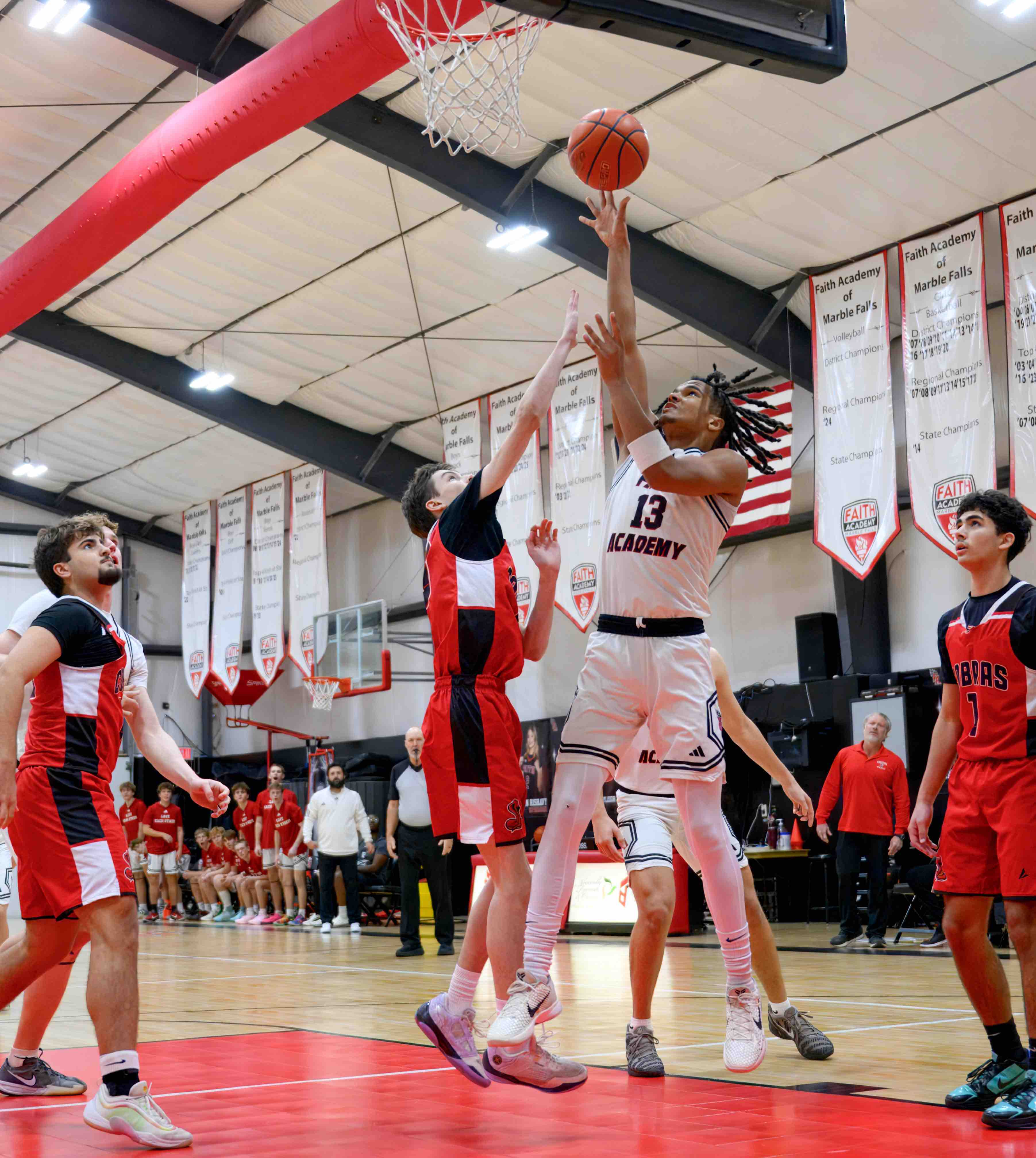 The Faith Academy of Marble Falls boys basketball team crushed San Antonio Keystone 80-46 Jan. 3 in the District 4-3A opener of the Texas Association of Private and Parochial Schools.