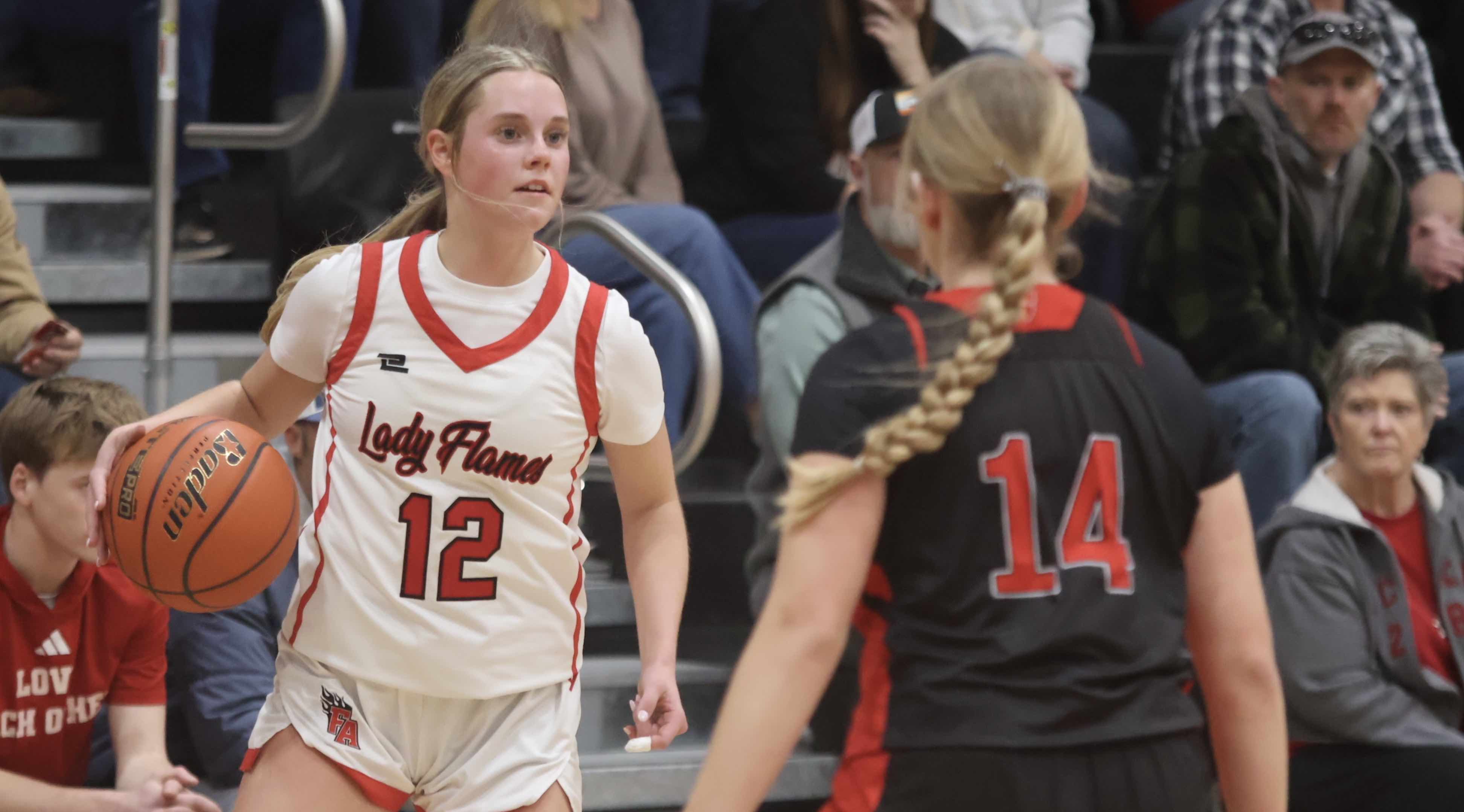 The Lady Flames (15-9, 3-2 third place) trailed 20-9 after the first quarter, 30-24 at the half and 41-35 going into the final stanza.