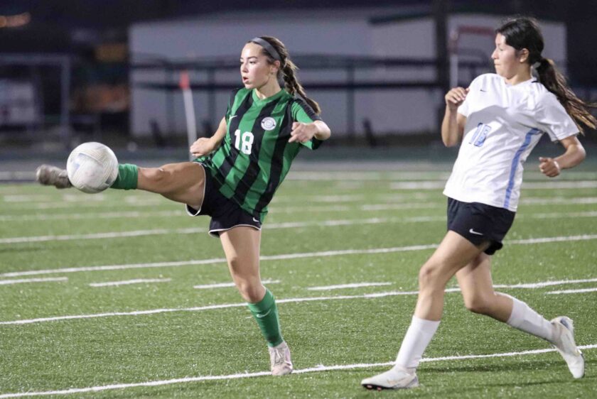 CAPTION: Burnet’s Cheyenne Adams scored one of the Lady Dawgs goals against Austin Northeast. Photo by Martelle Luedecke/Luedecke Photography