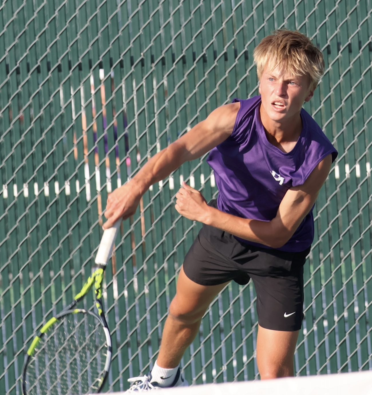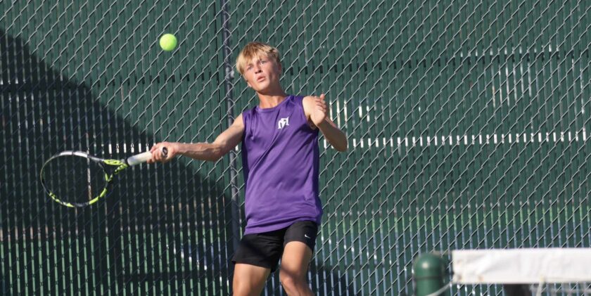 CAPTION: Though Marble Falls senior Cooper Womack’s springs on the tennis court ended the same, he put in the work to make himself a better athlete. Staff photo by Jennifer Fierro