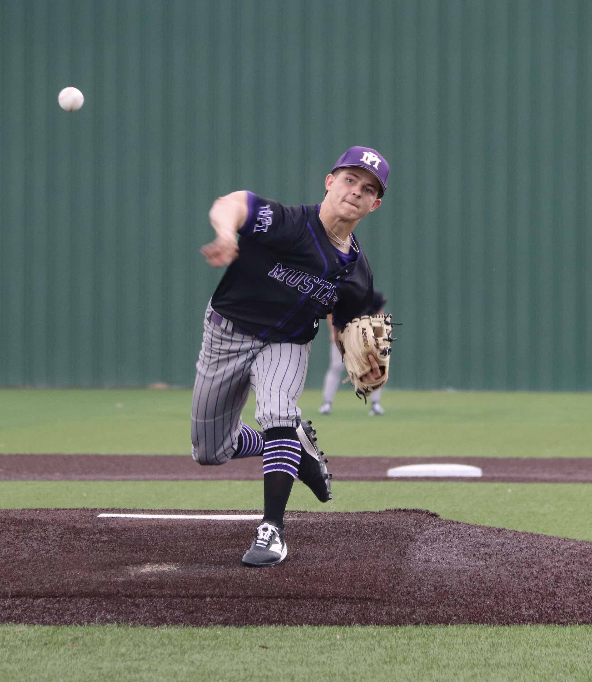 CAPTION: Ben Sowers is one of several pitchers who are on the Mustang staff and give head coach Tyler Porter options. Staff photo by Jennifer Fierro The Marble Falls High School baseball team went 2-1 at the Comal Creek Invitational Tournament March 5-7. The Mustangs defeated Corpus Christi Moody 9-6 March 5 and Beevile Jones 3-2 before losing to Corpus Christi Tulso-Midway 15-2 both on March 6. “Overall, I’m pleased,” head coach Tyler Porter said. “The third weekend is always tough because you’re sitting on district games on Tuesday. At…