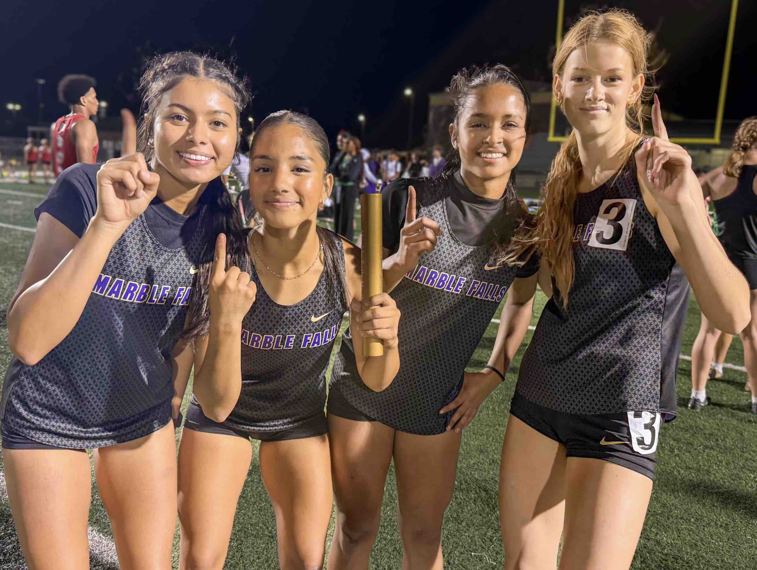 CAPTION: The Marble Falls girls junior varsity 1,600-meter relay team includes Lilliana Galeas (left), Sapana Khatri, Adriana George and Kelsey Cude. Courtesy photo The Marble Falls High School track and field program competed at the Cotton Boll Relays hosted by Taylor March 5. The Lady Mustangs were led by junior Kenley Virdell, who took gold in the shot put with a heave of 34 feet and a half inch, was fourth in the 100 meters in 14.74 seconds, fifth in the 200 meters in 30.01 seconds, and fifth in the discus…