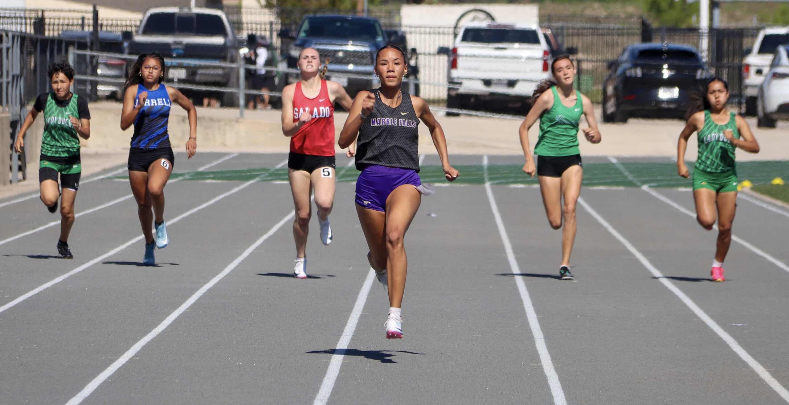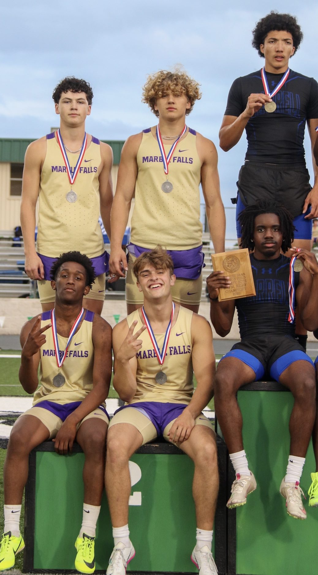 CAPTION: Head coach Austin Silva and the 1,600-meter relay team of Greg Colver, Gage Coleman, Connor Yaklin and Graham Goggans. Photo by Martelle Luedecke/Luedecke Photography Several Marble Falls High School boys track and field members earned the right to advance to the Class 4A Region III meet thanks to their finishes at the District 23 and 24-4A meet April 15. They are sophomore Graham Goggans, juniors Gage Coleman, Greg Colver, Anthony Griffin, Owen Martin and Connor Yaklin, and freshman Joaquim Edwards. Goggans took double gold in the 400 meters in 49.70…