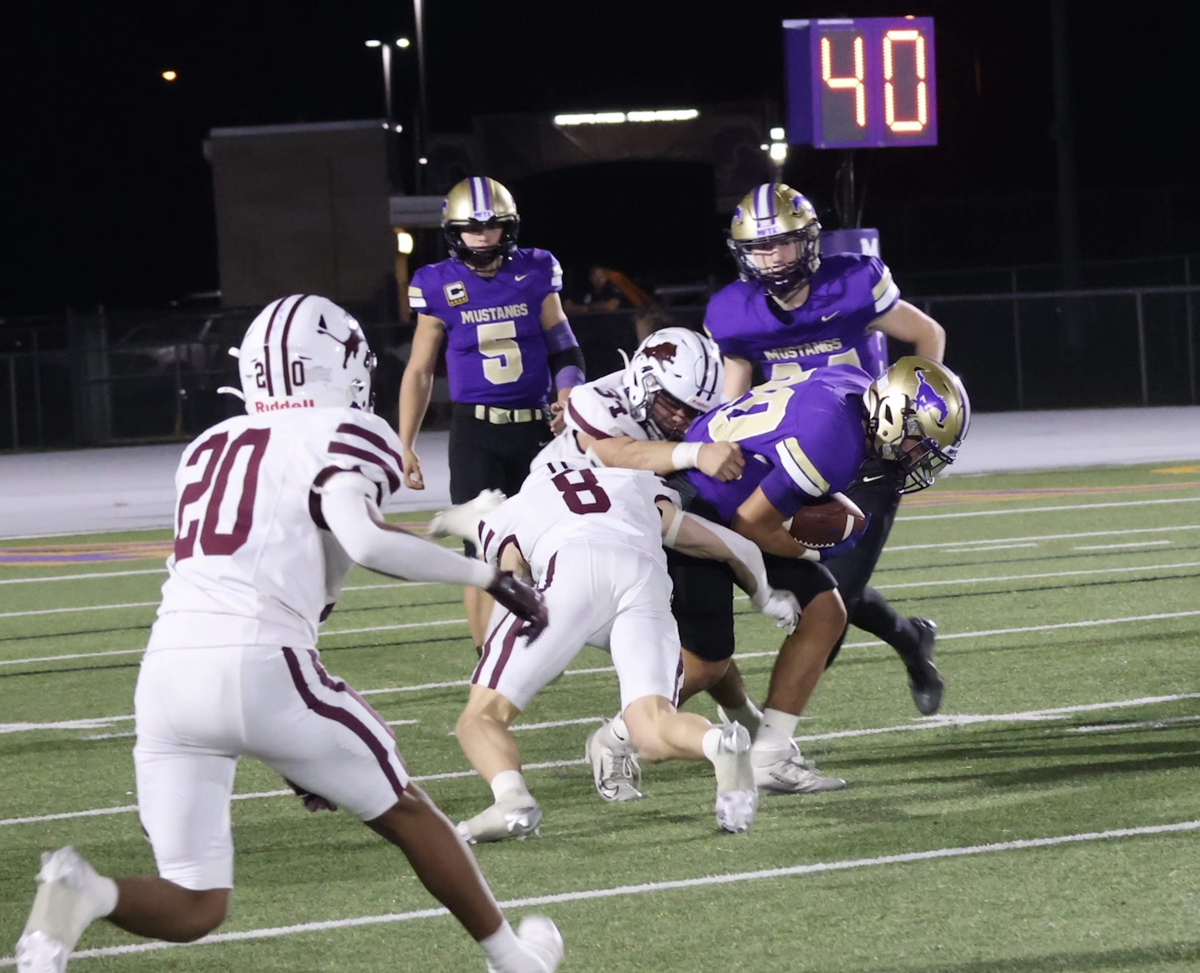 CAPTION: Marble Falls senior running back Joaquin Aguilar played his final game as a Mustang football player after three years as a starter. Staff photo by Jennifer Fierro The Marble Falls High School football team lost to Brownwood 41-7 Nov. 7 to end the 2025 season. The Lions (6-4, 3-1) finish as the District 4-4A runners-up and will enter the playoffs as the district’s No. 2 seed. The Mustangs’ (3-7, 0-4 District 4-4A Division I) only score came on a screen pass to senior receiver Kaden Langbein from sophomore quarterback…